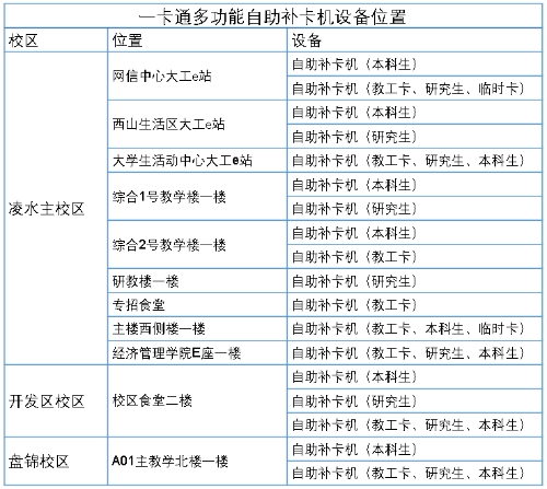 一卡通多功能自助补卡机设备部署地点: