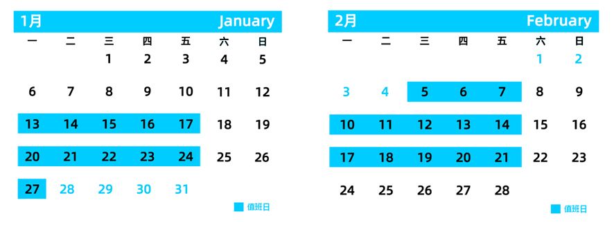 1.现场值班时间为:2025年1月12日~2月22日,每周二、周四8:30~11:30(1月28日~2月4日法定节假日期间除外)。