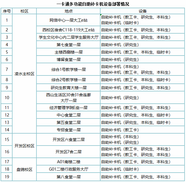1、一卡通多功能自助补卡机设备部署地点: