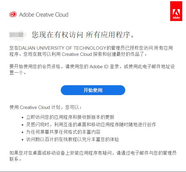 2.随后您用于申请Adobe NUD账号的邮箱将会收到Adobe公司发送的如下邮件,根据邮件提示操作即可获取Adobe系列软件最新资源: