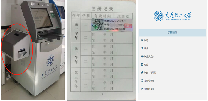 为方便研究生自助进行学籍注册,减少研究生不必要的跑腿盖章,网络与信息化中心联合研究生院,在过去学年研究生刷身份证人脸识别注册的基础上,在自助打印服务平台进一步增加了注册标签自助打印功能。研究生同学们可以在研究生院规定的时间段内,通过自助打印终端设备进行自助注册并打印带防伪功能的“大连理工大学学生学籍注册标签”,打印好的标签贴在学生证学期注册的相应位置即可完成学生证学籍注册。自助打印标签取代原有到学部(学院)教务员老师处盖章注册的线下模式,并与原蓝色的传统研究生注册章具有同等的效力。
