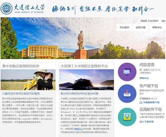 经过近三个月的测试、部署和调试,由网络与信息化中心负责建设的大连理工大学微软正版授权平台于2015年3月30日正式上线了!
