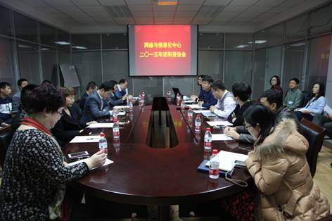 12月9日,网信中心2015年度述职报告会在中心第三会议室举行。学校部分部门及院系的信息化负责人、教师代表和网信中心全体人员参加了报告会,报告会由中心主任张巍主持。