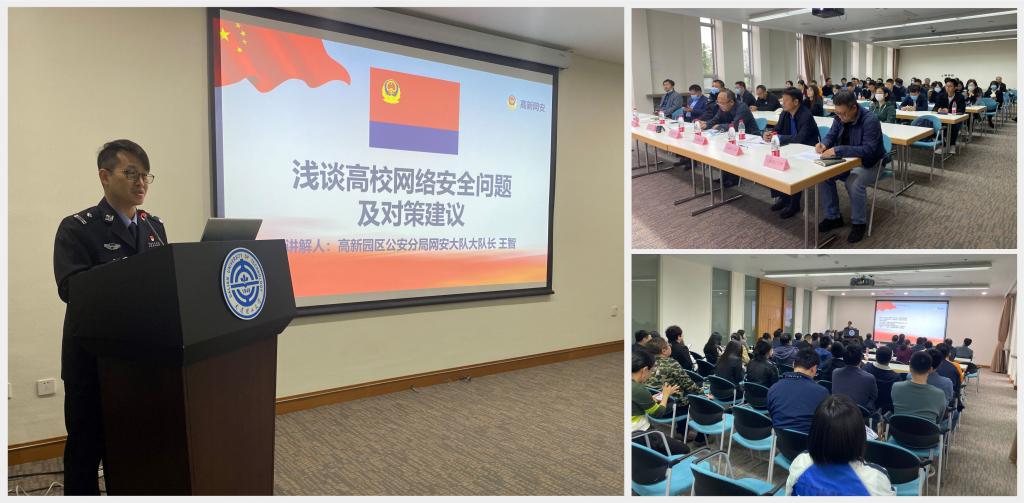 本届宣传周活动以“网络安全为人民,网络安全靠人民”为主题,采取“线上线下”相结合的宣传模式。学校于10月14日邀请大连市公安局高新分局网安大队王智大队长开展网络安全专题讲座。王队长分别就当前国内外网络安全形势及背景、高新区网络安全典型事件及法律适用、高校网络安全对策建议三个方面作了详细剖析,参会老师还与各位警官就高校网络安全面临的困境、常见问题等进行了讨论,使得与会人员充分了解了当前高校网络安全的问题及对策。