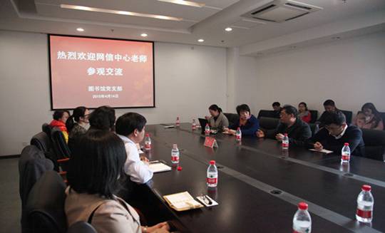 图书馆党支部书记王红首先介绍了图书馆党支部的概况、人员配置以及支部组织生活情况,具体介绍了图书馆党支部利用形式多样的活动促进支部党员的学习与交流的经验和方法,网信中心也对中心的党支部建设情况进行了简要的介绍。随后,就进一步加深两个部门交流与学习的文献检索、大数据处理平台等方面进行了更深层次的探讨与交流。
