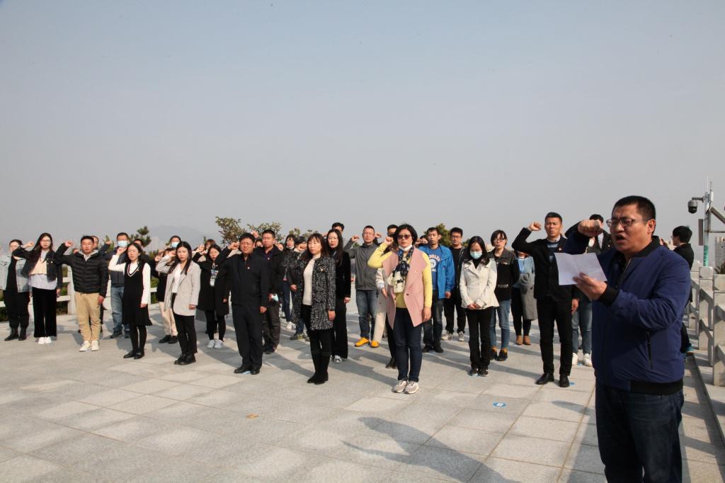 位于高新园区磨盘山的凌水烈士陵园松柏掩映,气氛肃穆,共有78位解放战争和抗美援朝中牺牲的烈士长眠于此。全体师生党员佩戴党徽,庄严地来到陵园,在革命烈士纪念碑前三鞠躬并敬献鲜花,向革命先烈致以崇高的敬意与深切的悼念。随后,党员们瞻仰烈士名录,聆听战争年代坚守信仰、舍生取义、浴血奋战的光辉历史,追忆他们的革命英雄事迹。面对着鲜红的党旗,全体党员举起右手,重温入党誓词,表达不忘初心、牢记使命,为共产主义事业奋斗终身的坚定政治信念。
