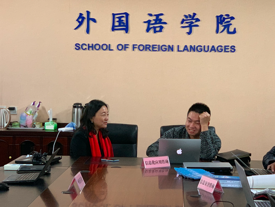 “请问一下,大工云盘中怎样建立群组,如何共享资料?”外国语学院的潘老师在网信中心梅放老师的指导下打开电脑,通过门户网站登录到大工云盘。11月21日下午,在外国语学院218会议室,网信中心“送服务到身边”特色工作正在进行。