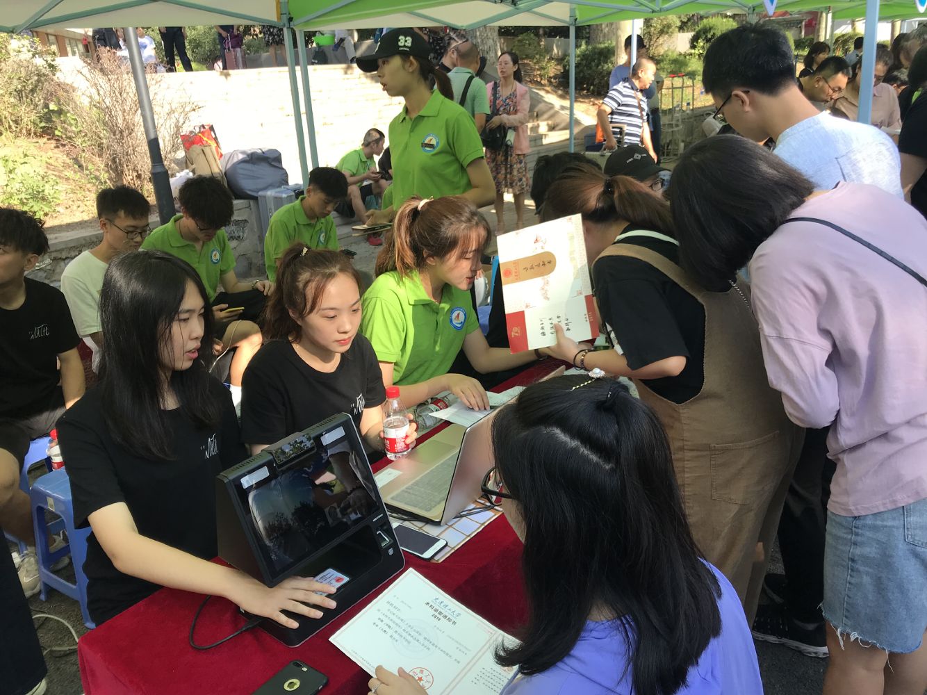 人脸识别继续为我校新生报到提供便捷服务。今年又对人脸设备强光直射等问题进行了进一步的优化升级。新生报到采用人证一体机进行身份核验。报到前,新生的照片和身份信息就已经采集进入系统。在迎新现场,系统自动识别身份,速度快到你难以想象,全校需要迎接近12000个小萌新,不到两小时,接近一半的萌新已经完成报到了。人脸识别提高了迎新效率,节省人力物力,得到了新生和各院系迎新工作人员的一致点赞。