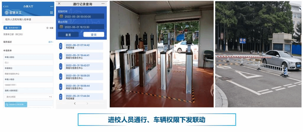 访客人员可以通过“i大工”微信小程序-“校外人员和车辆申请(访客)”自主进行申请入校,由被访单位依规审批;校内人员保留原有的入校申请方式,由本单位负责申请老师通过网上办事大厅统一进行办理。入校申请审批通过后入校人员和车辆可以通过车辆识别、校门通道、门岗手持机等,进行身份和健康信息核验,实现人员出入校权限面向管控设备的下发联动。因疫情原因相关功能暂未启用,相关功能启用及各二级单位审批权限分发由保卫处负责。
