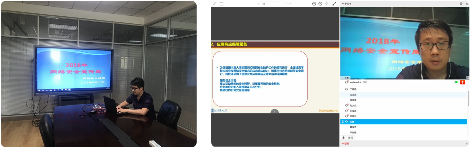 为了进一步推动我校网络信息安全建设,加强网络信息安全教育宣传,营造安全、健康、文明、和谐的网络环境。在我校开展2018年网络安全宣传周活动期间,网信中心于9月18日下午,举办了网络安全在线培训,培训面向学校各单位信息化专干及其他感兴趣的教师。