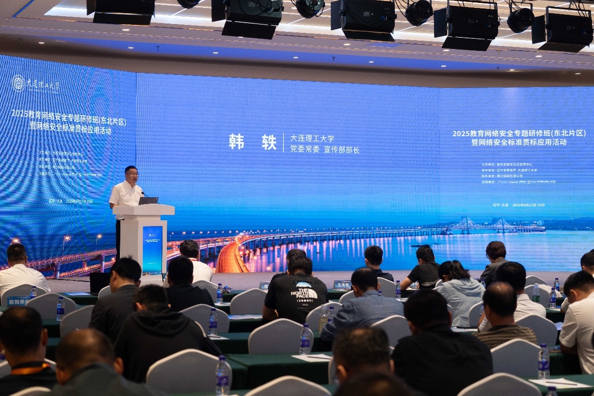 9月18日,由教育部教育管理信息中心主办,辽宁省教育厅与我校共同承办的"2025教育网络安全专题研修班(东北片区)暨网络安全标准贯标应用活动"成功举办。教育部教育管理信息中心副主任曾德华、辽宁省教育厅二级巡视员程万恩,我校党委常委、宣传部部长韩轶等出席研修班并致辞。来自辽宁、吉林、黑龙江、内蒙古等省(区)教育行政部门及高校、职业院校的网络安全工作负责同志220余人参加研修。研修班开班仪式由学校网络与信息化中心主任马吉祥主持。