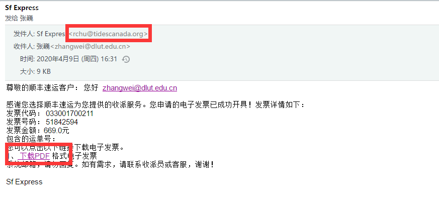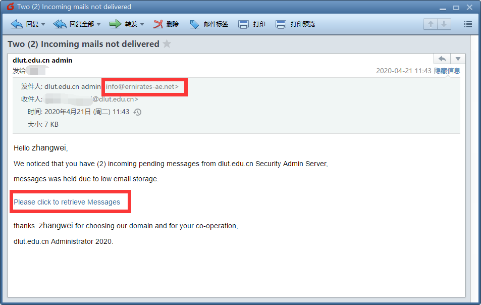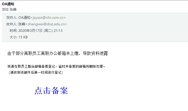 图4钓鱼邮件示例4(邮件内容存在恶意链接的)
