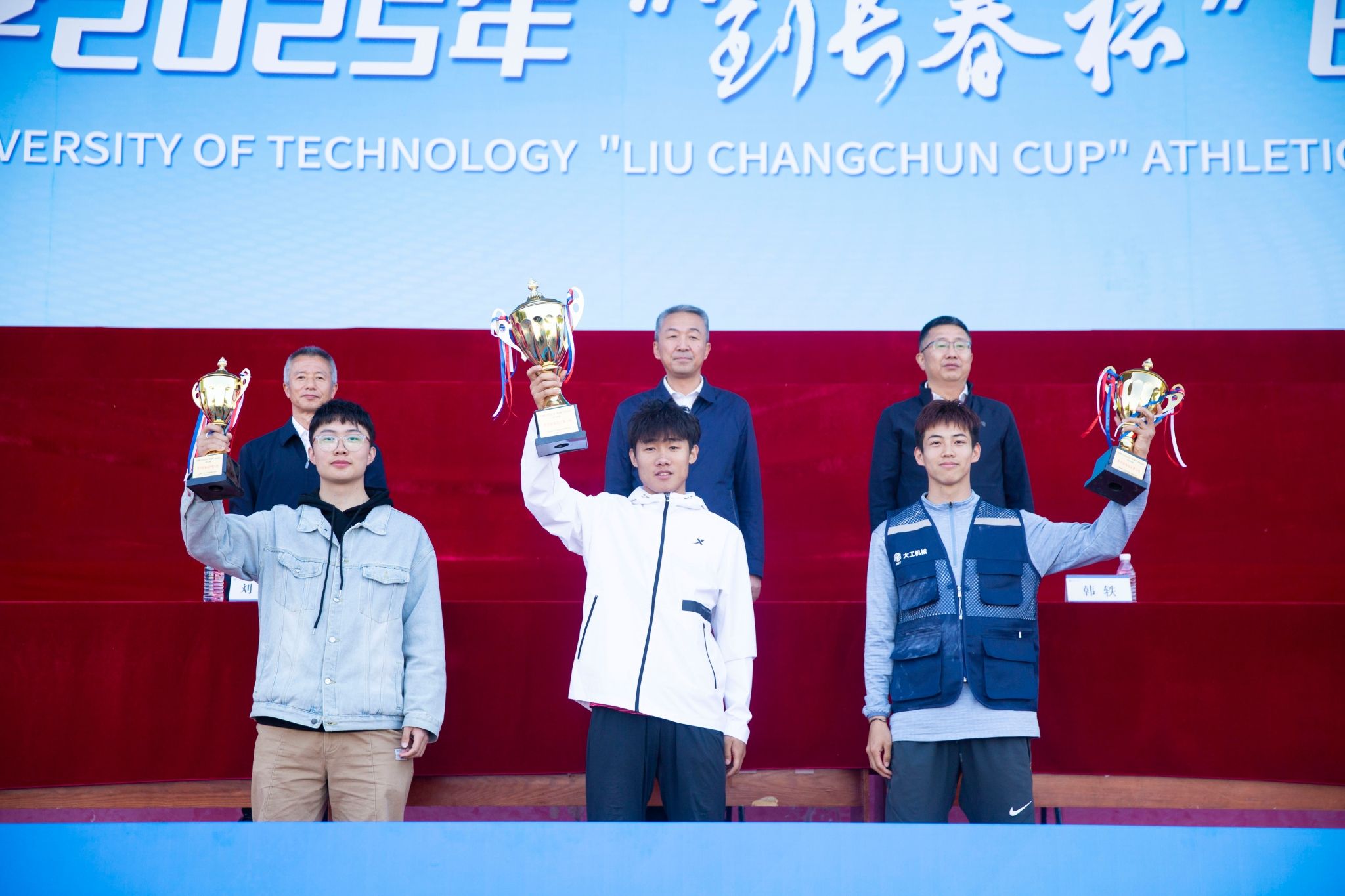 下午4时,2025年田径运动会圆满闭幕。副校长康旭东、党委常委韩轶、体育与健康学院党委书记刘立清为获奖集体和个人颁奖。