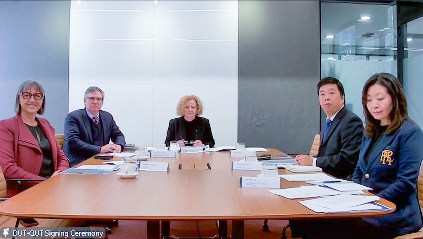 7月31日上午,大连理工大学—昆士兰科技大学合作办学协议签约仪式通过视频会议形式举行。校长贾振元,副校长罗钟铉、张弛,校长助理占敬敬出席仪式。昆士兰科技大学校长谢镁莉,副校长马克·哈维、顾元通及工学部部长阿娜·德丽特克等出席仪式。人力资源处、教务处、国际合作与交流处、会计核算中心、计算机科学与技术学院、建设工程学院、医学部等相关单位负责人参加仪式。仪式由罗钟铉主持。